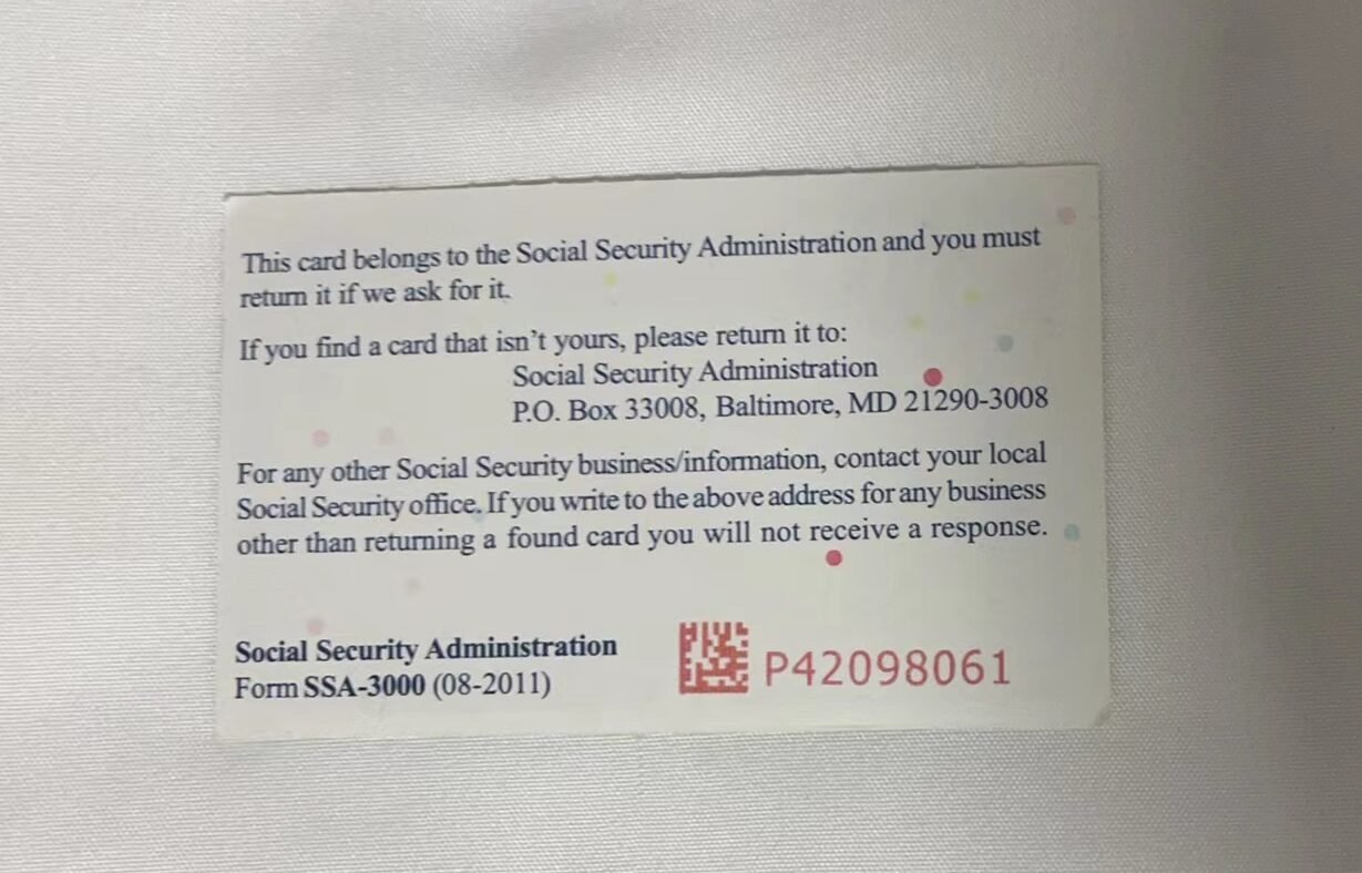 The card displays the cardholder’s name and Social Security Number, lacking cultural or regional symbols as its primary role is administrative.